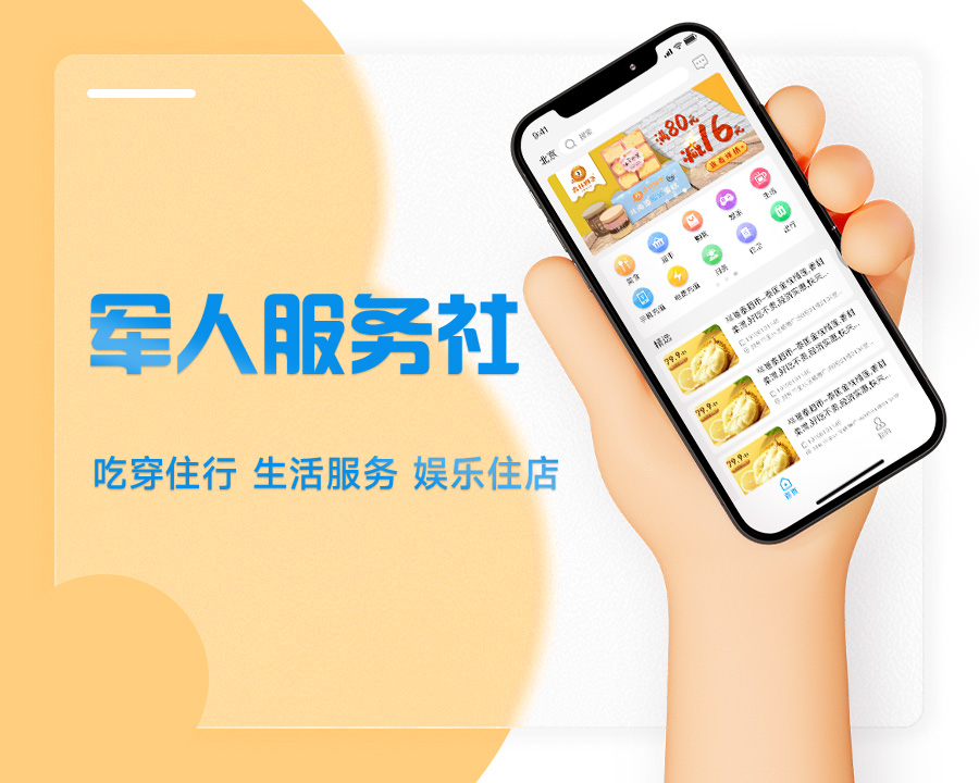 军人服务社为现役(退役)军人及家属推出的专属生活服务,提供优惠商品导购、优惠商品销售、优惠服务发现、优惠资讯汇总,以及积分增值服务,从“吃穿住行”各个方面全方位为军人及家属群体提供优惠。